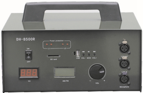 ? ■多輸入方式:內(nèi)置無線信號(調(diào)頻調(diào)幅)接收,一路U段無線接收,一路有線話筒輸入口,一路線路輸入口;